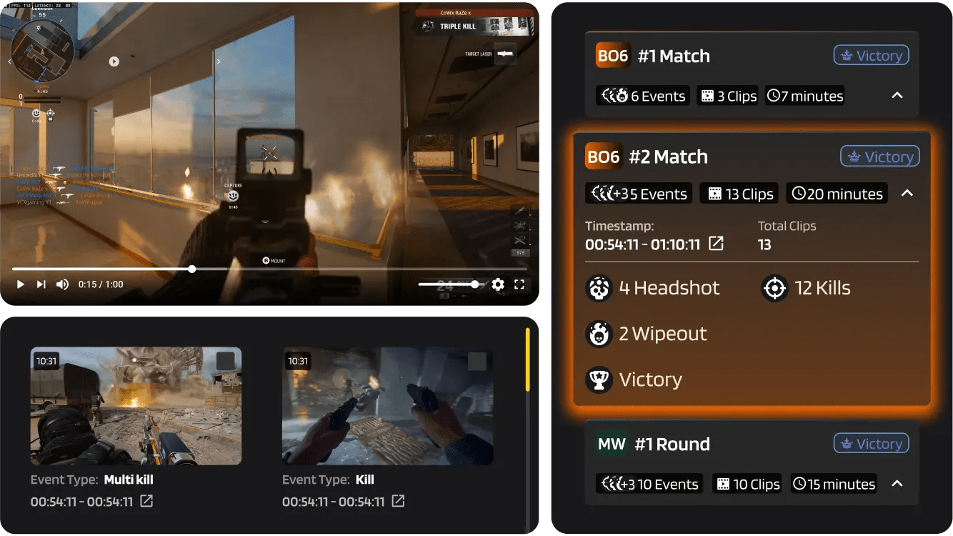 Eklipse supports game clipping for over 1,000 titles, including all Call of Duty games like Warzone, Modern Warfare III, and CoD BO6. It automatically captures your best moments, trims them with precision, and delivers ready-to-share clips in minutes.